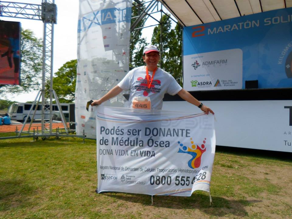 Pasado un tiempo, me enteré de una nenita de 12 años que fallecía por no tener donantes. Cómo ayudar y que no volviera a pasar? Así que pensé que lo que mejor que podía hacer era correr y difundir la donación de médula, porque es muy simple dar vida en vida y casi tan fácil como donar sangre, igual que donar plaquetas, no me canso de decirlo y hasta lo dice la camiseta con la que corro siempre.